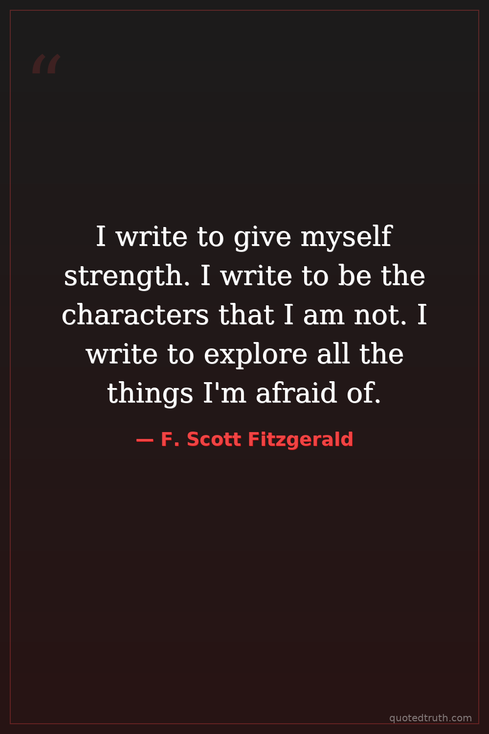 I write to give myself strength. I write to be the characters that I am not. I write to explore all the things I'm afraid of.
