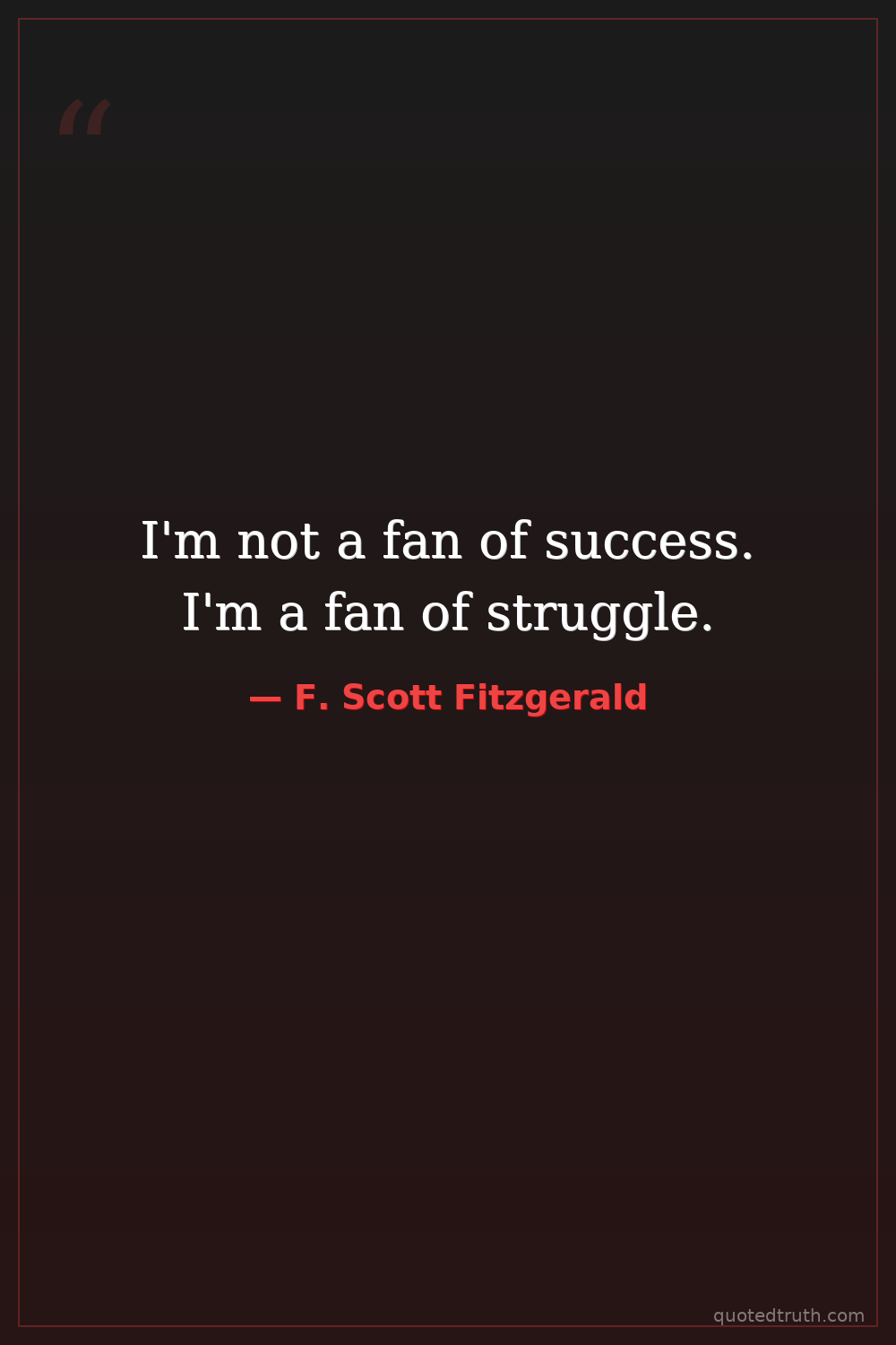 I'm not a fan of success. I'm a fan of struggle.