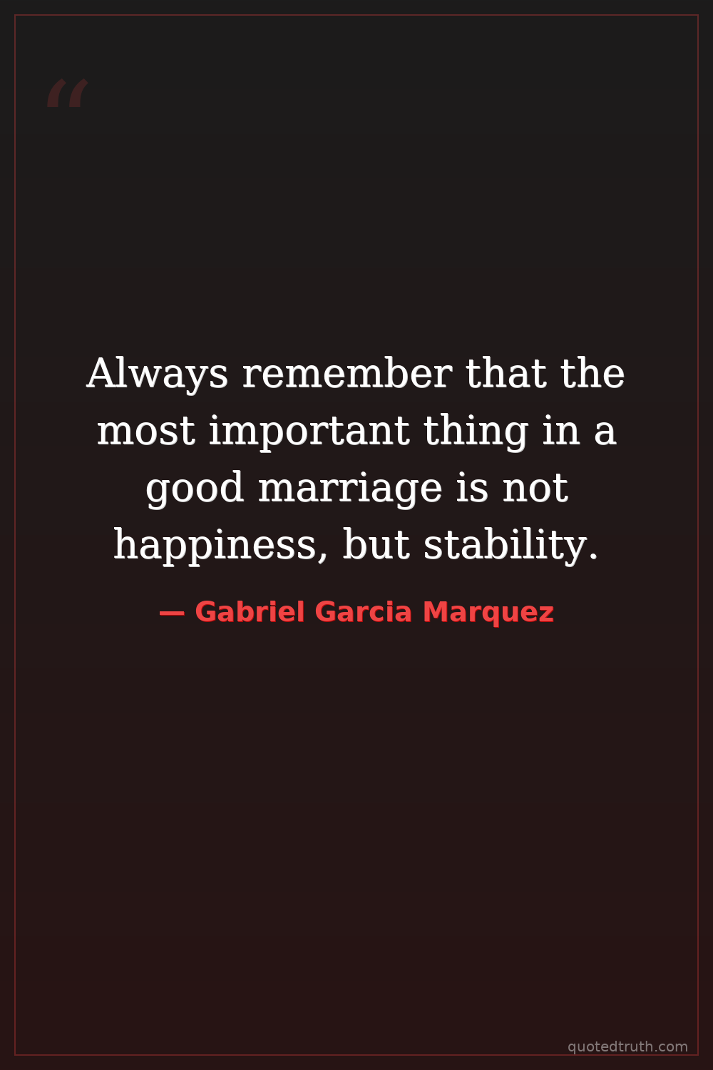 Always remember that the most important thing in a good marriage is not happiness, but stability.