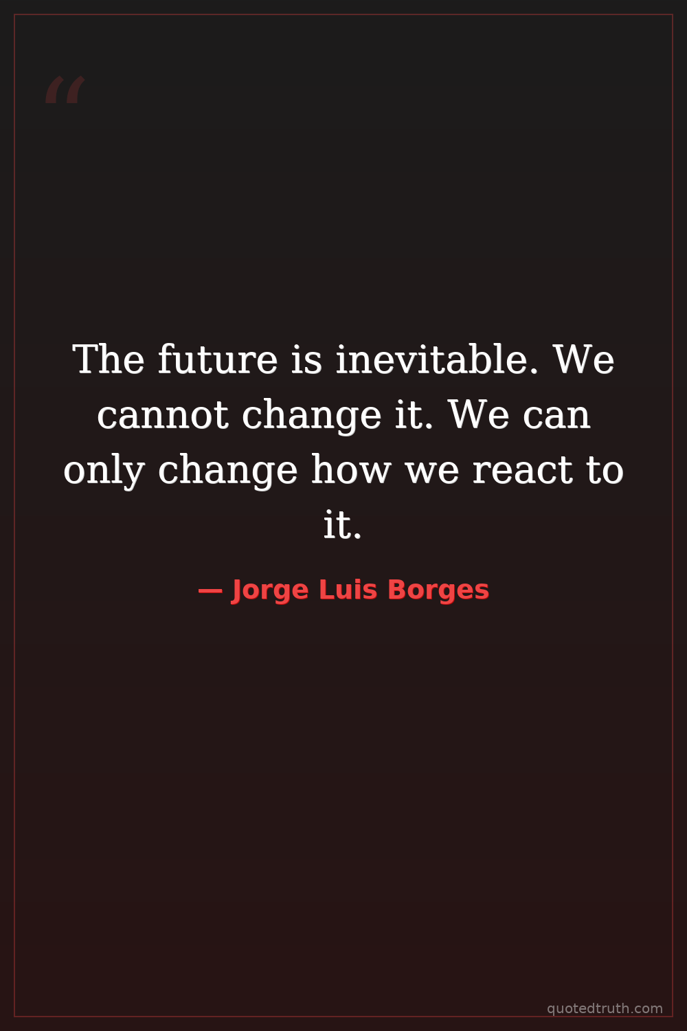 The future is inevitable. We cannot change it. We can only change how we react to it.