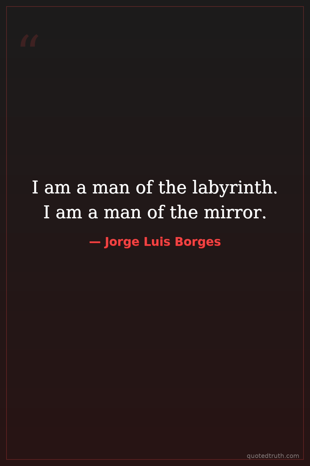 I am a man of the labyrinth. I am a man of the mirror.