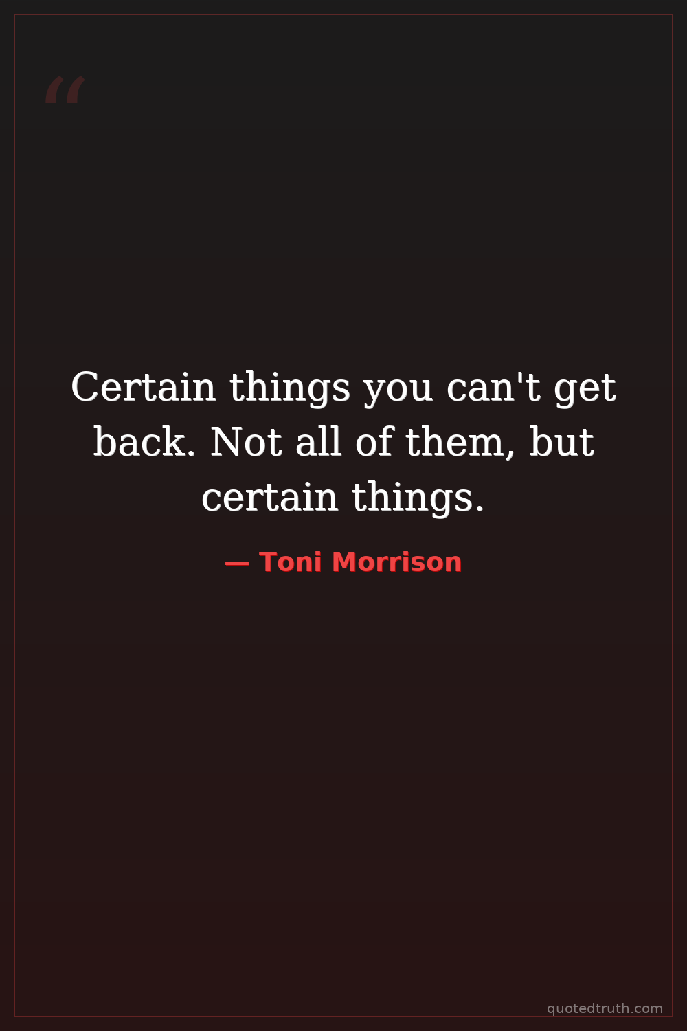 Certain things you can't get back. Not all of them, but certain things.