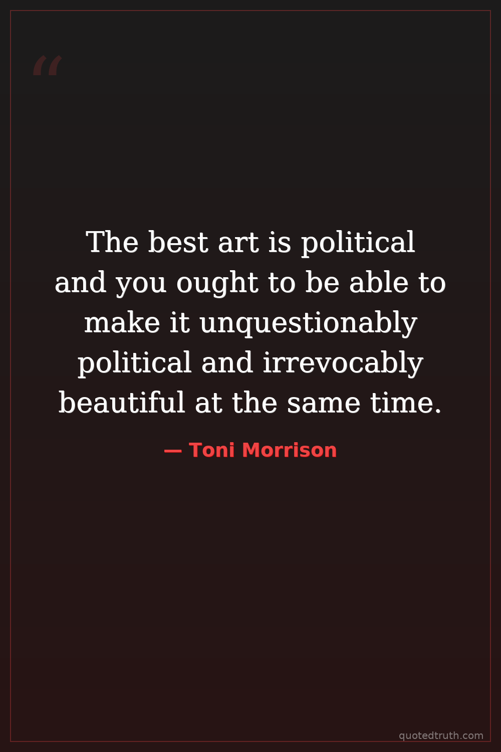 The best art is political and you ought to be able to make it unquestionably political and irrevocably beautiful at the same time.