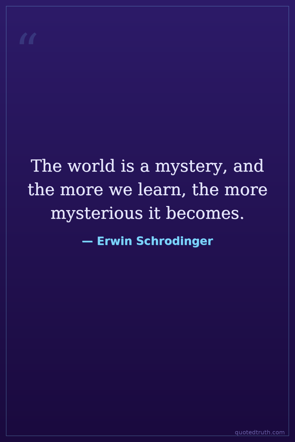 The world is a mystery, and the more we learn, the more mysterious it becomes.