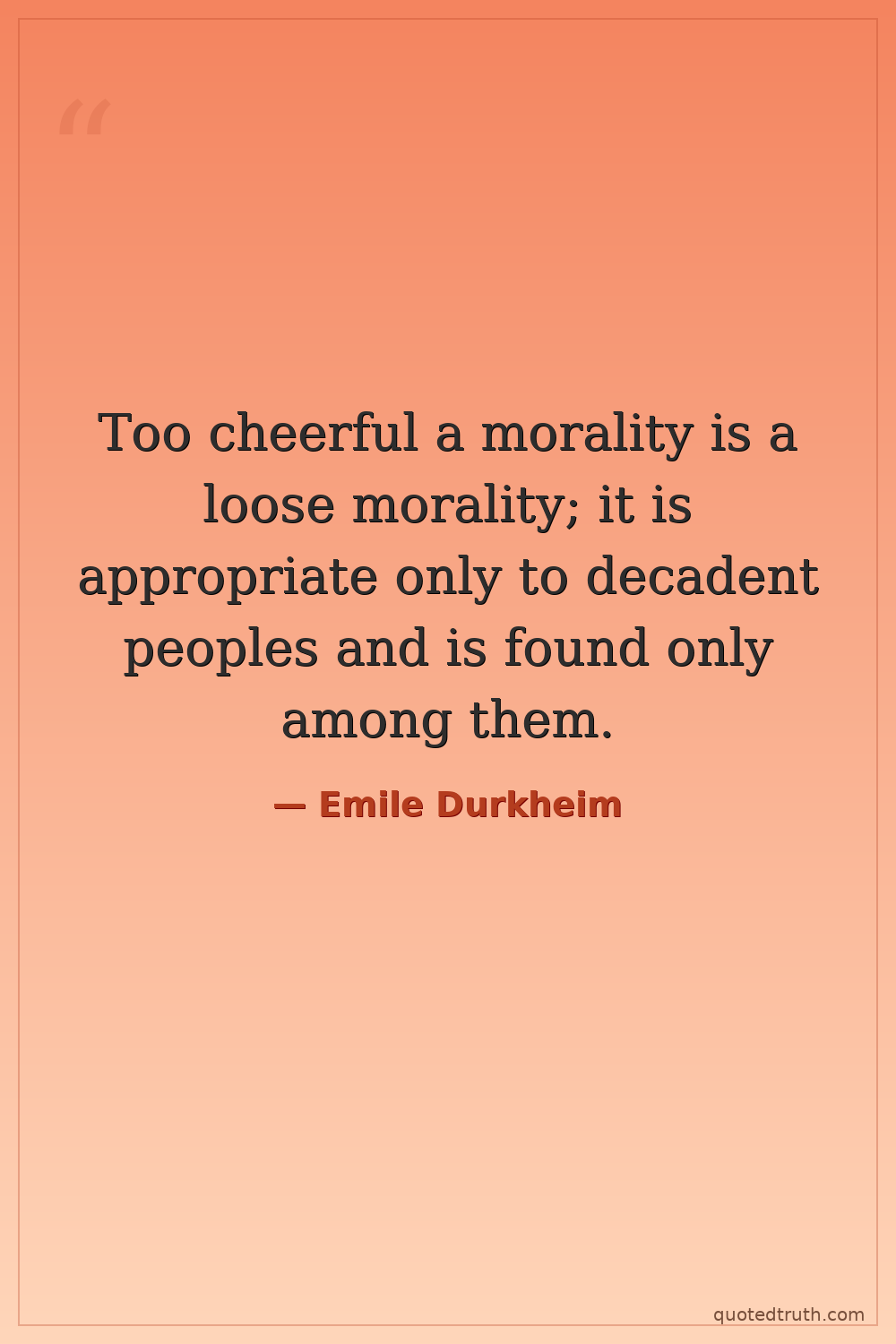 Too cheerful a morality is a loose morality; it is appropriate only to decadent peoples and is found only among them.
