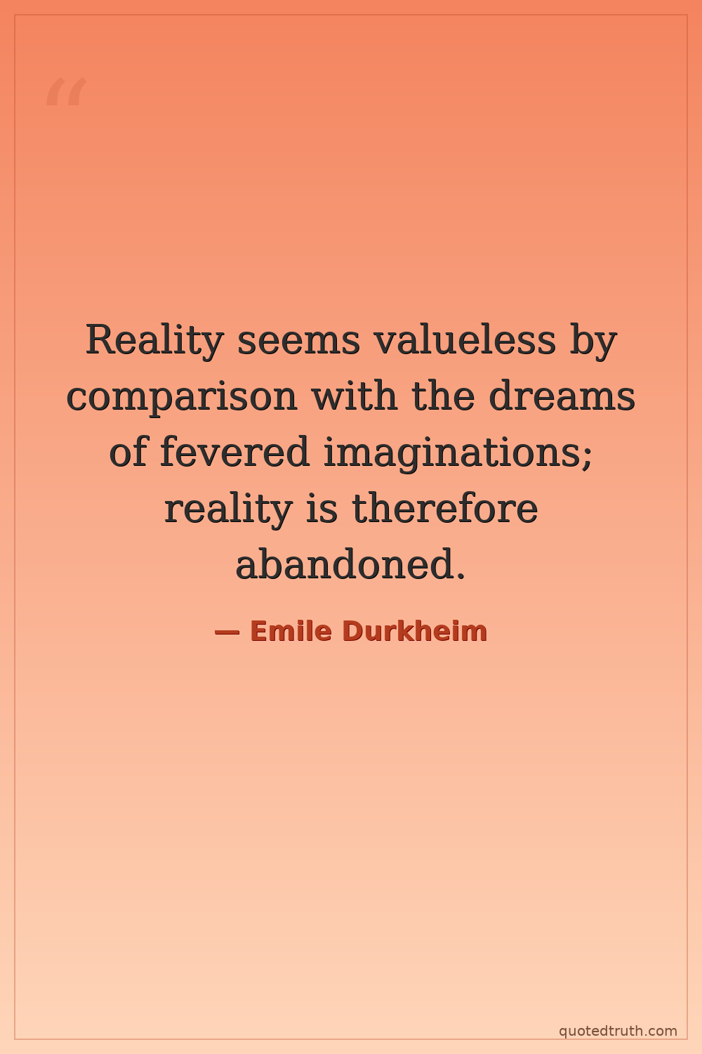 Reality seems valueless by comparison with the dreams of fevered imaginations; reality is therefore abandoned.