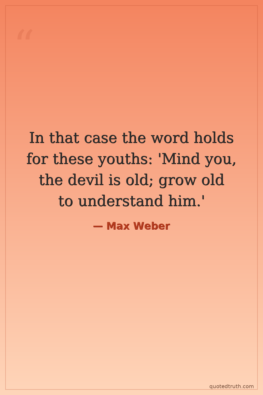 In that case the word holds for these youths: 'Mind you, the devil is old; grow old to understand him.'