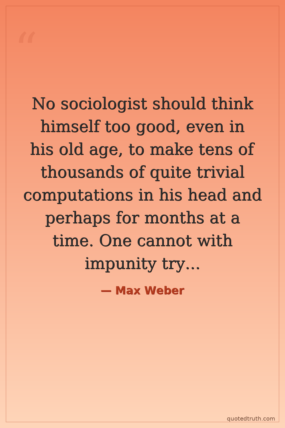 No sociologist should think himself too good, even in his old age, to make tens of thousands of quite trivial computations in his head and perhaps for months at a time. One cannot with impunity try to transfer this task entirely to mechanical assistants if one wishes to figure something, even though the final result is often small indeed.