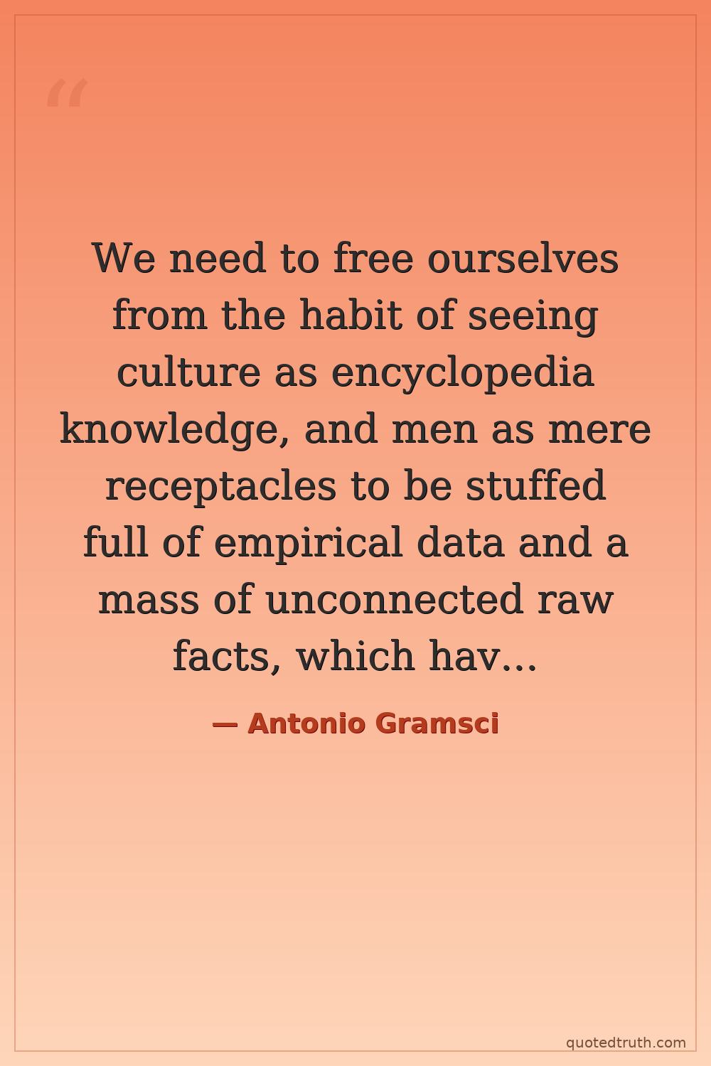 We need to free ourselves from the habit of seeing culture as encyclopedia knowledge, and men as mere receptacles to be stuffed full of empirical data and a mass of unconnected raw facts, which have to be filed in the brain as in the columns of a dictionary, enabling their owner to respond to the various stimuli from the outside world.