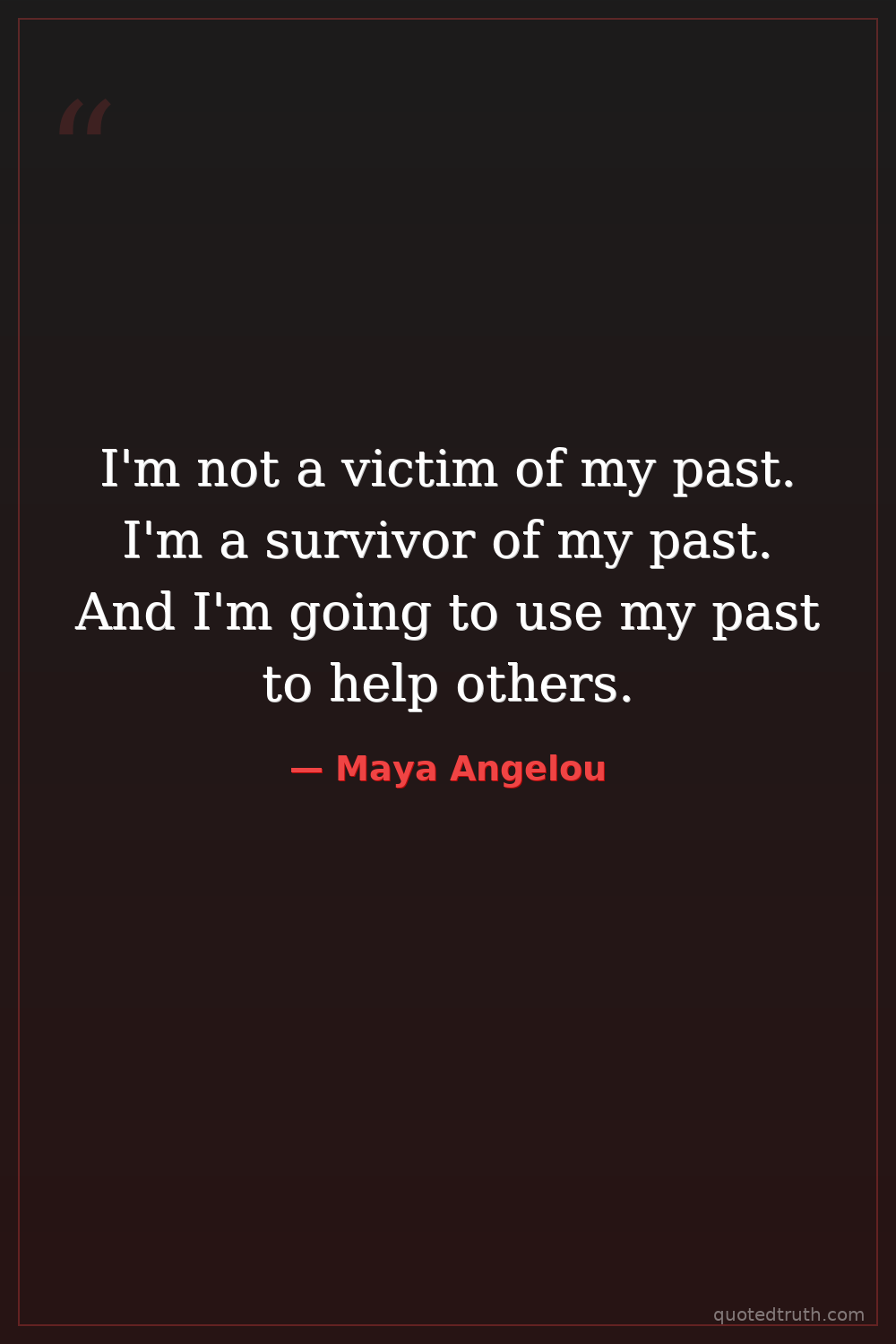 I'm not a victim of my past. I'm a survivor of my past. And I'm going to use my past to help others.