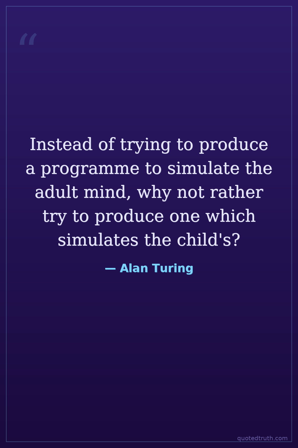 Instead of trying to produce a programme to simulate the adult mind, why not rather try to produce one which simulates the child's?