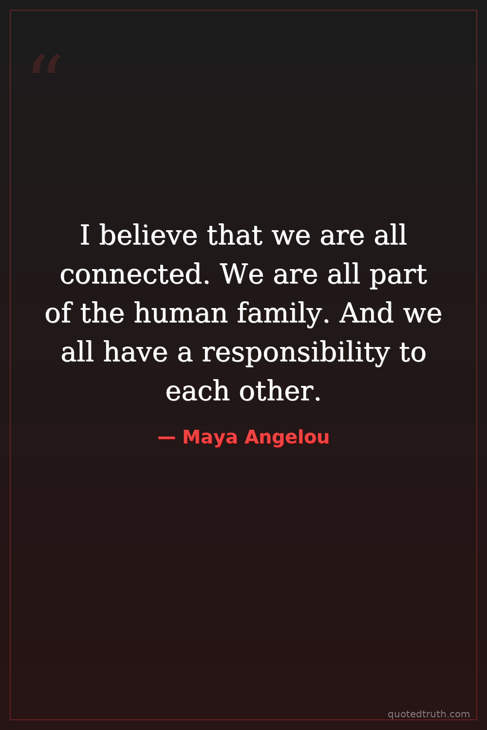 I believe that we are all connected. We are all part of the human family. And we all have a responsibility to each other.