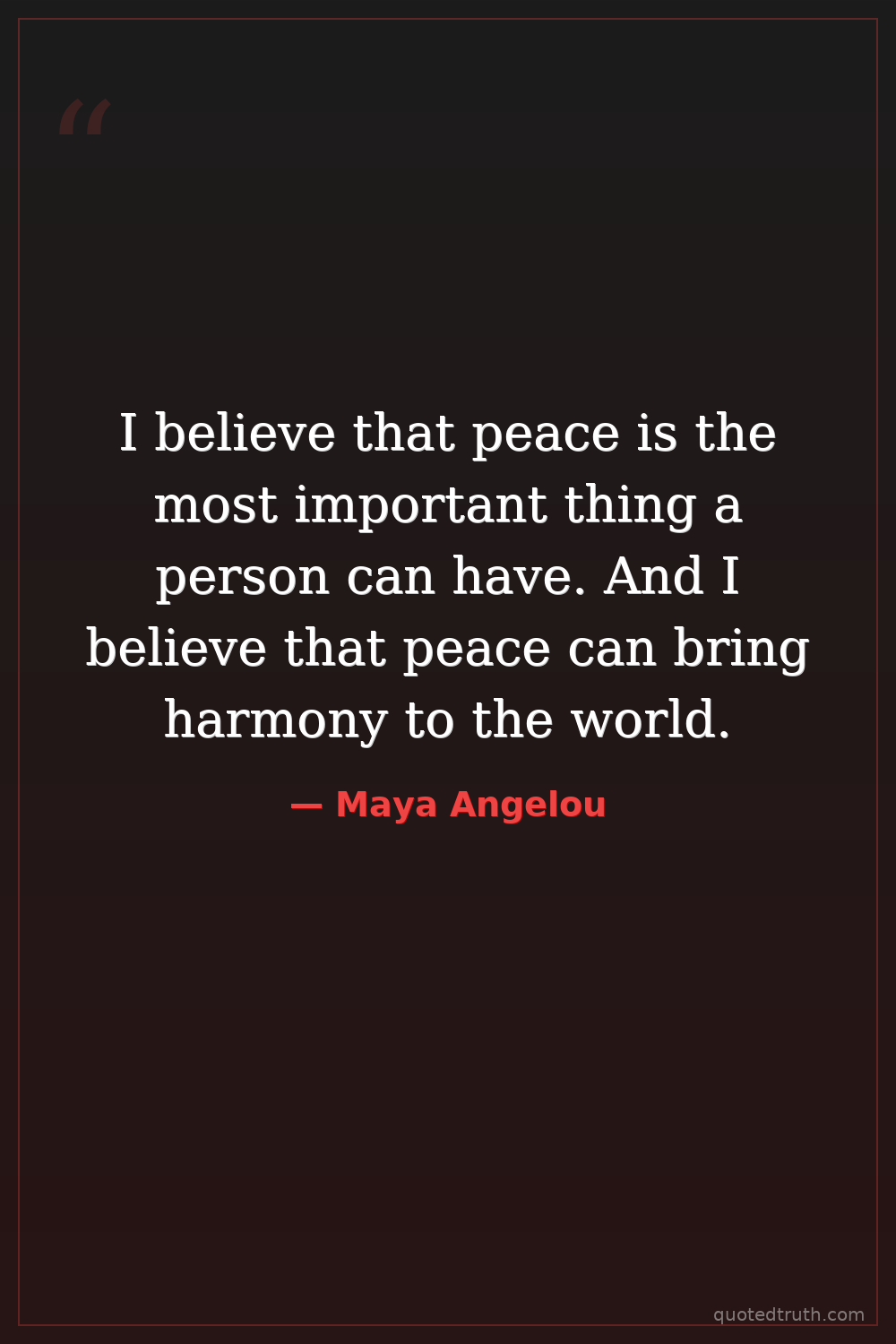 I believe that peace is the most important thing a person can have. And I believe that peace can bring harmony to the world.