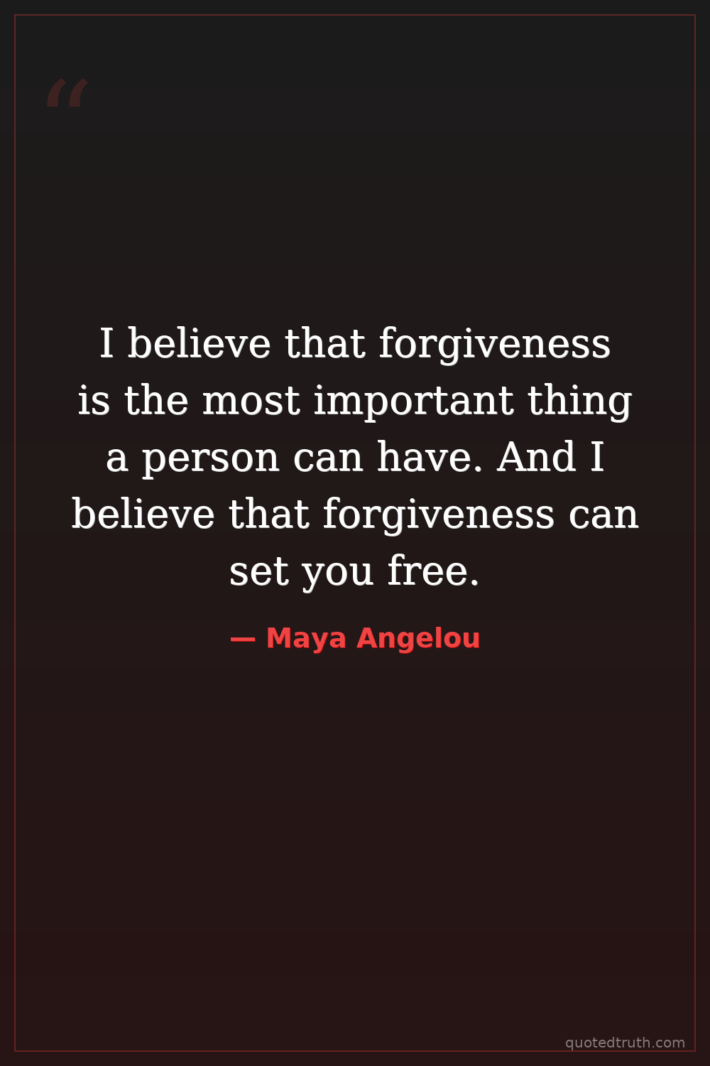 I believe that forgiveness is the most important thing a person can have. And I believe that forgiveness can set you free.