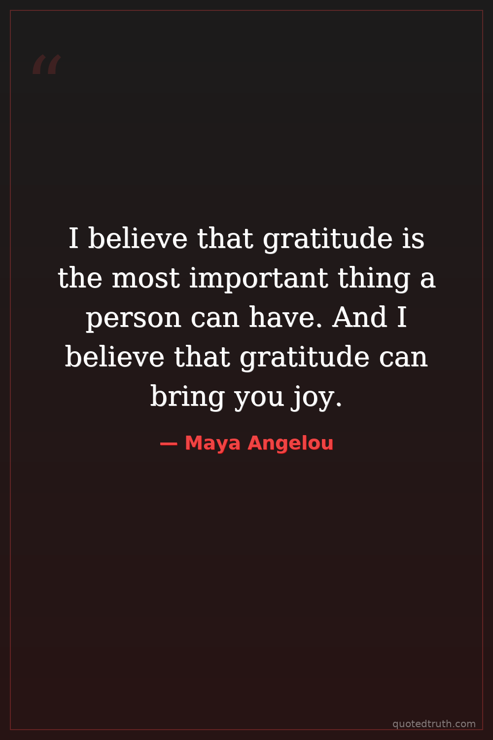 I believe that gratitude is the most important thing a person can have. And I believe that gratitude can bring you joy.