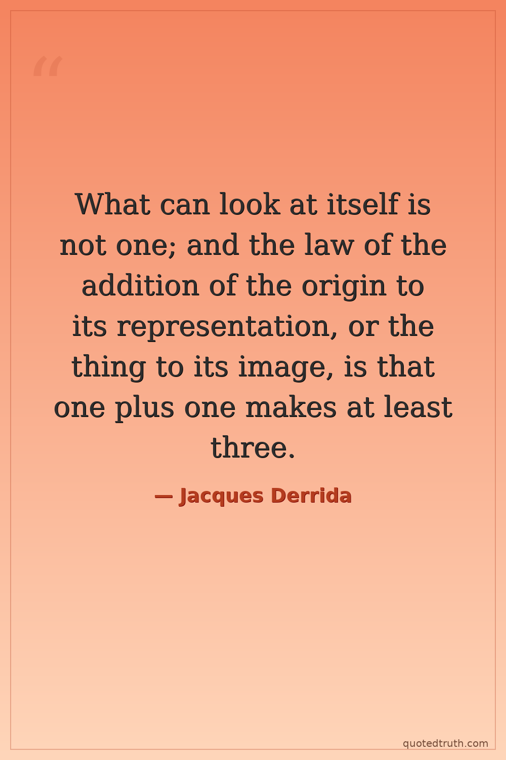 What can look at itself is not one; and the law of the addition of the origin to its representation, or the thing to its image, is that one plus one makes at least three.