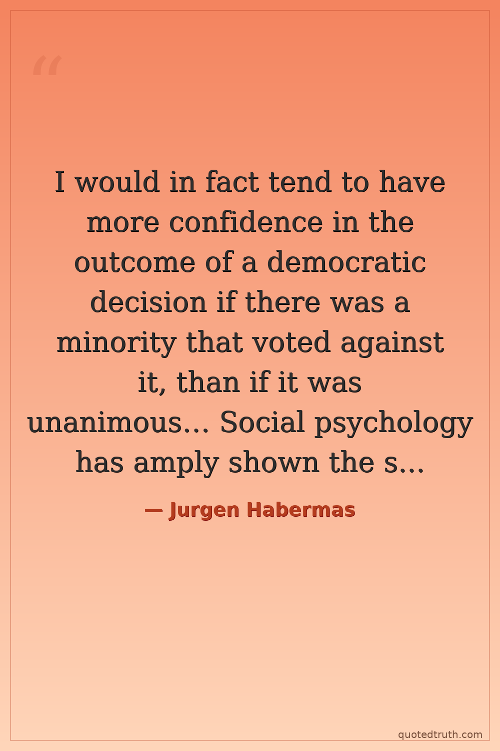 I would in fact tend to have more confidence in the outcome of a democratic decision if there was a minority that voted against it, than if it was unanimous… Social psychology has amply shown the strength of this bandwagon effect.