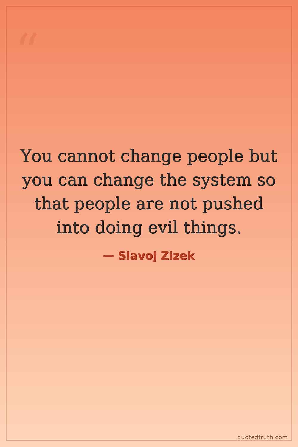 You cannot change people but you can change the system so that people are not pushed into doing evil things.