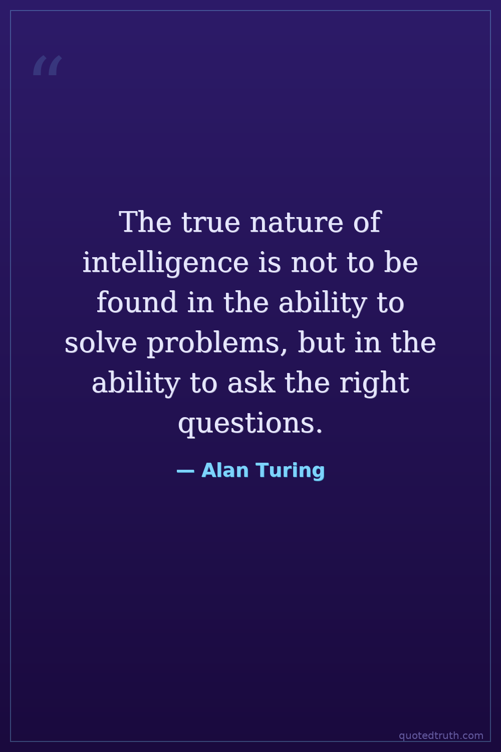 The true nature of intelligence is not to be found in the ability to solve problems, but in the ability to ask the right questions.