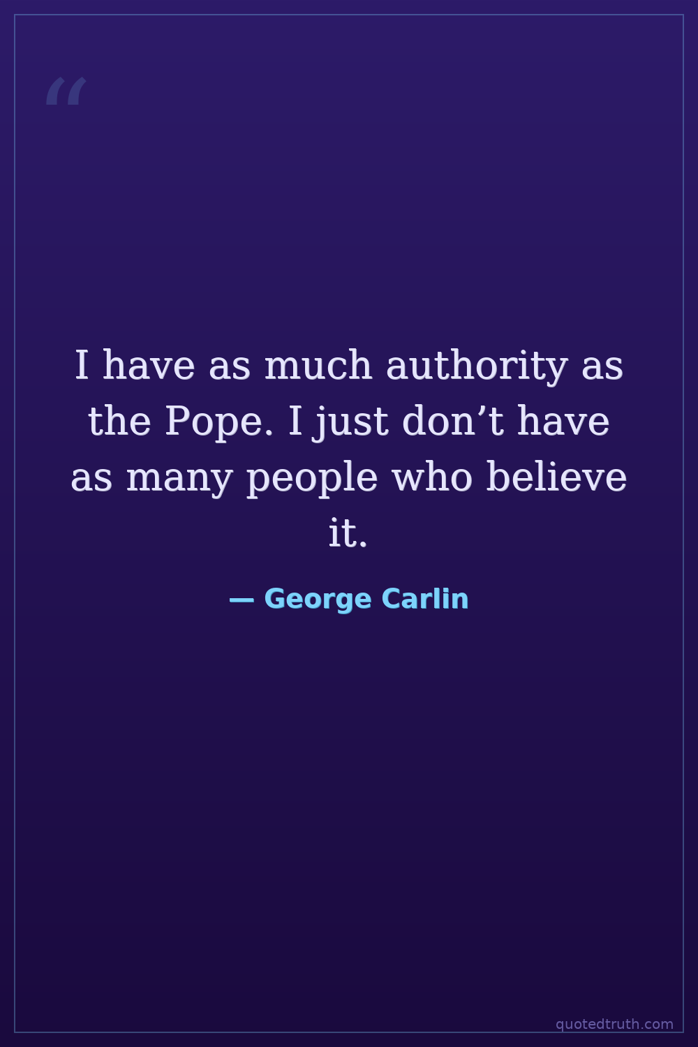 I have as much authority as the Pope. I just don’t have as many people who believe it.