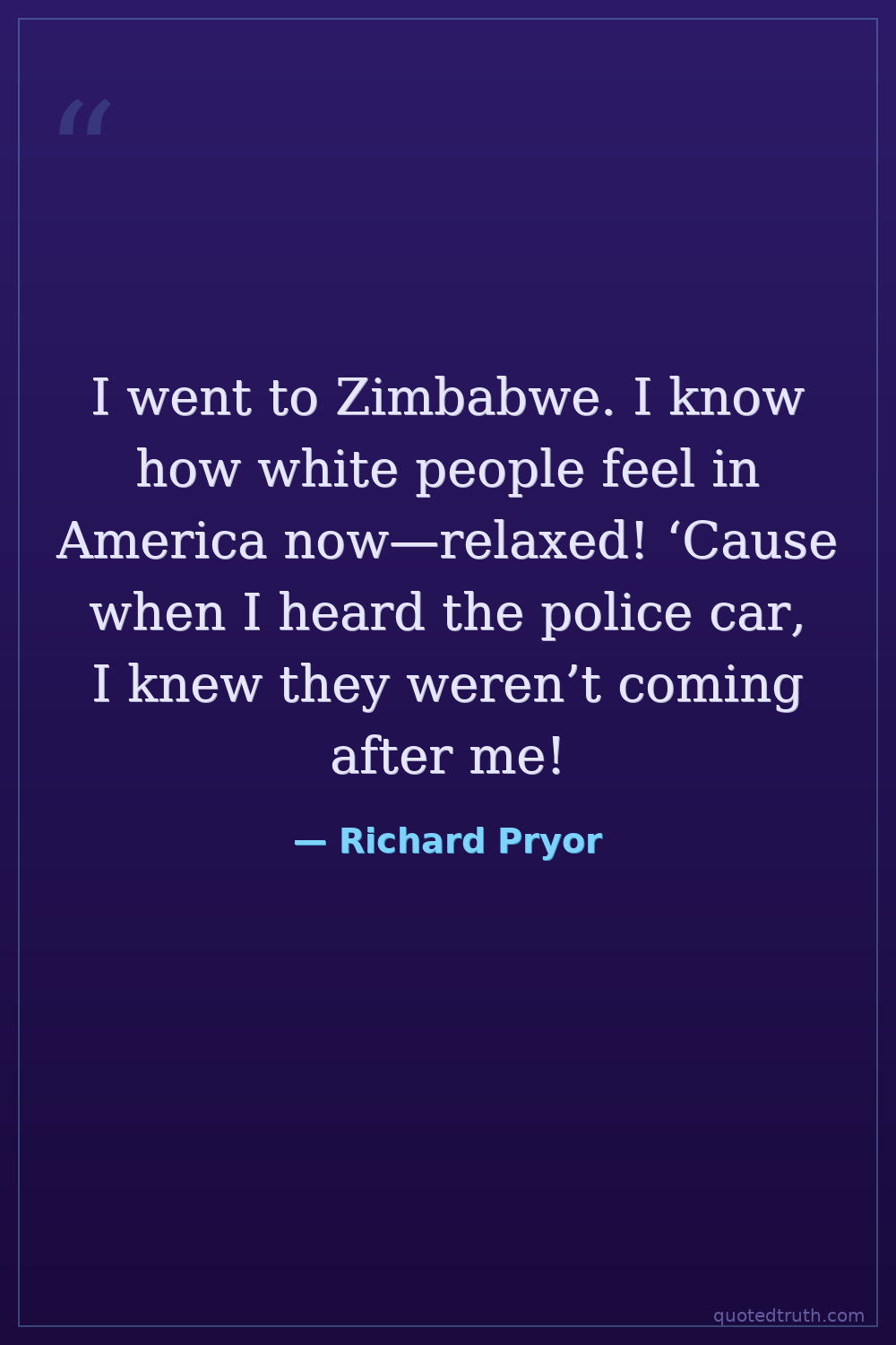 I went to Zimbabwe. I know how white people feel in America now—relaxed! ‘Cause when I heard the police car, I knew they weren’t coming after me!