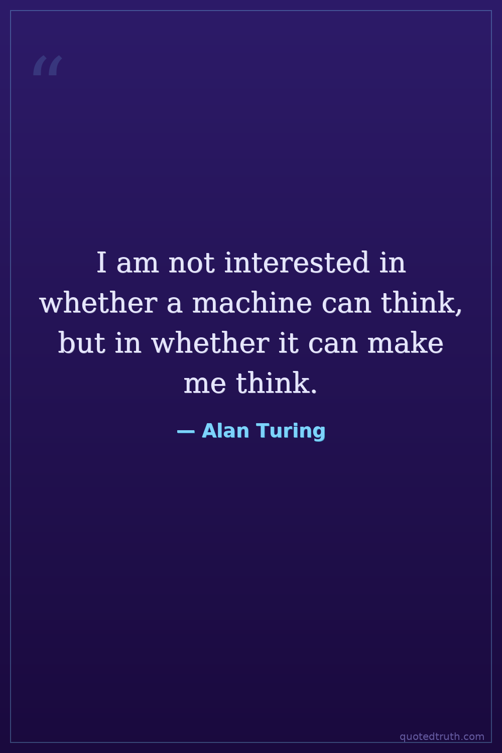I am not interested in whether a machine can think, but in whether it can make me think.