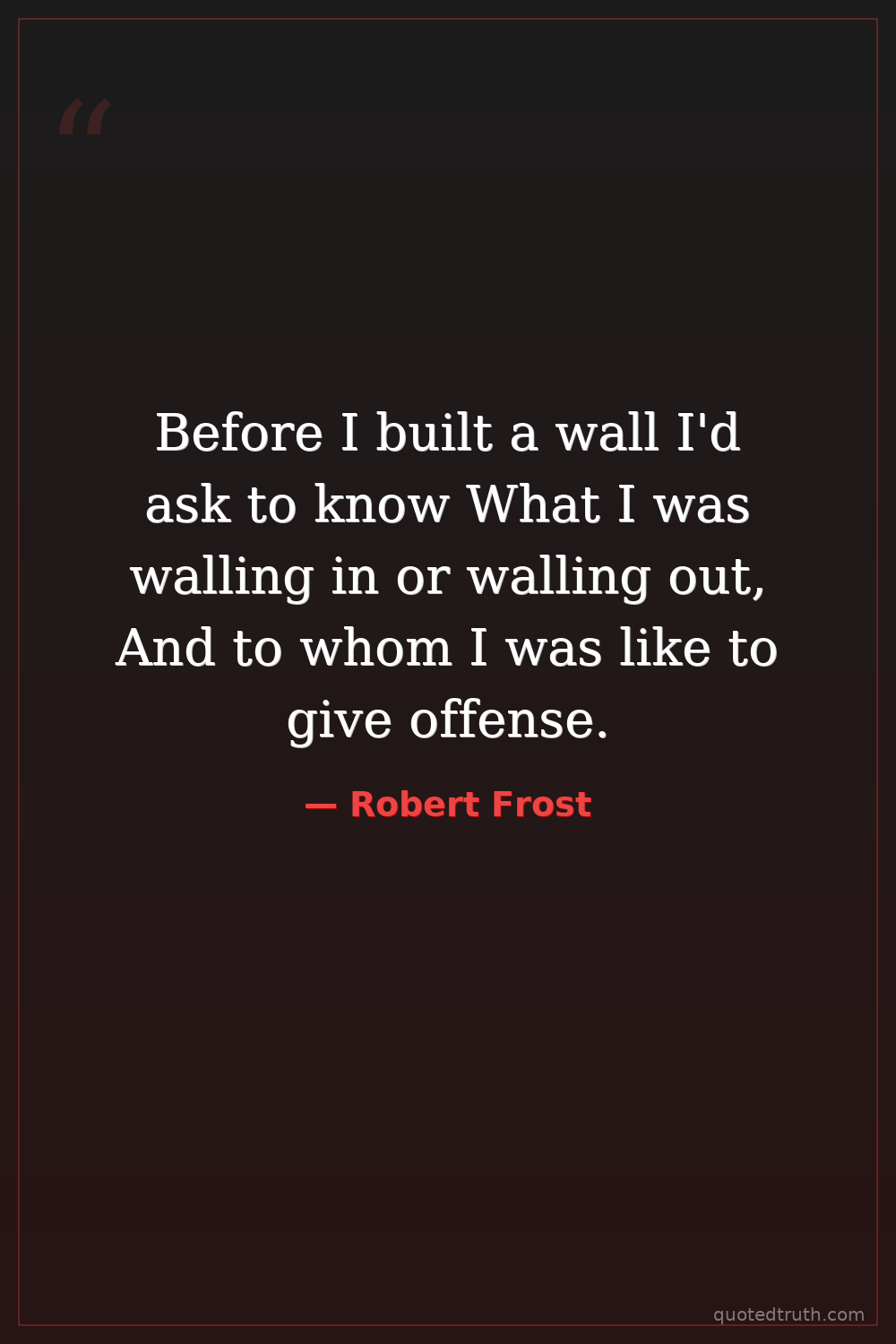 Before I built a wall I'd ask to know What I was walling in or walling out, And to whom I was like to give offense.