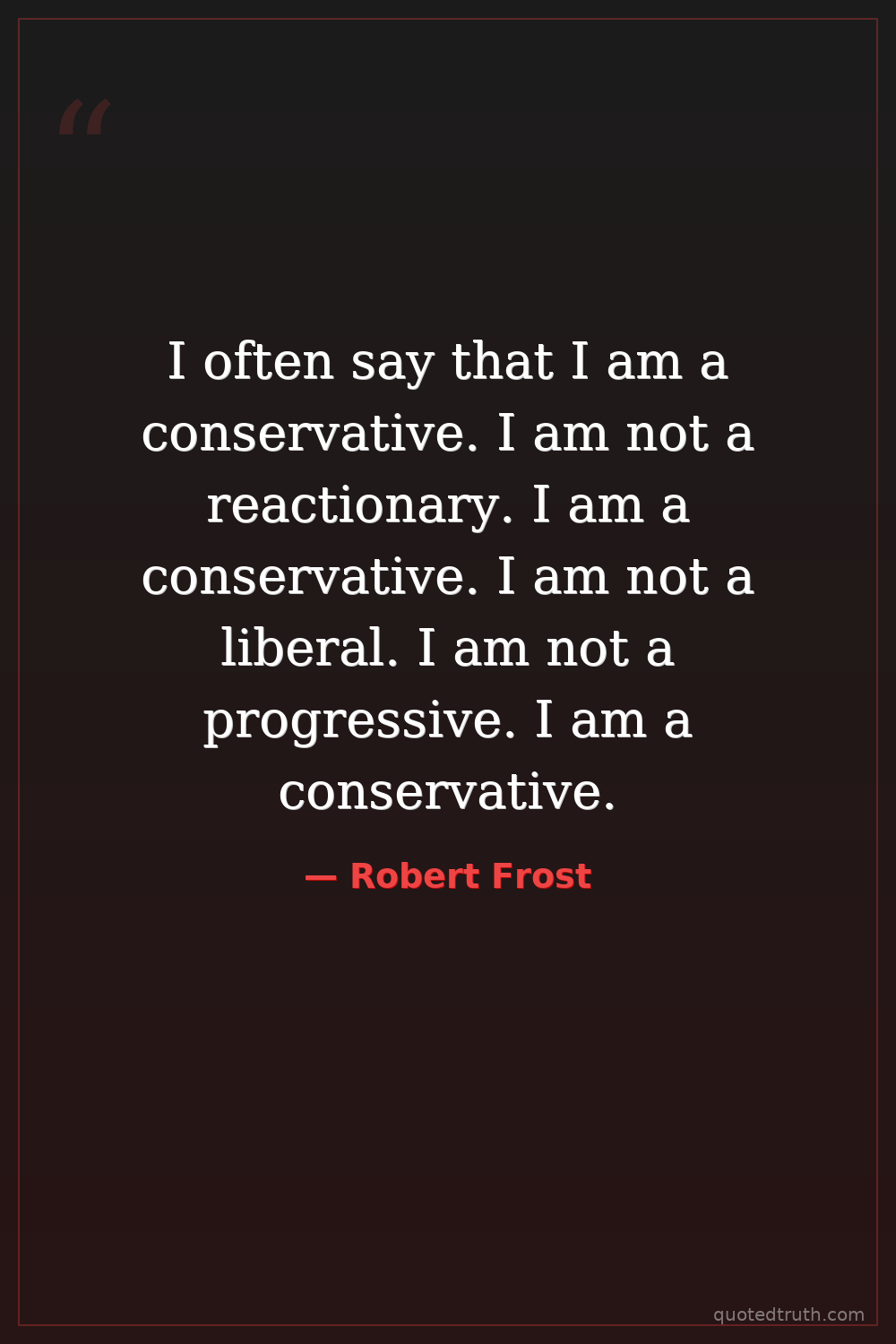 I often say that I am a conservative. I am not a reactionary. I am a conservative. I am not a liberal. I am not a progressive. I am a conservative.