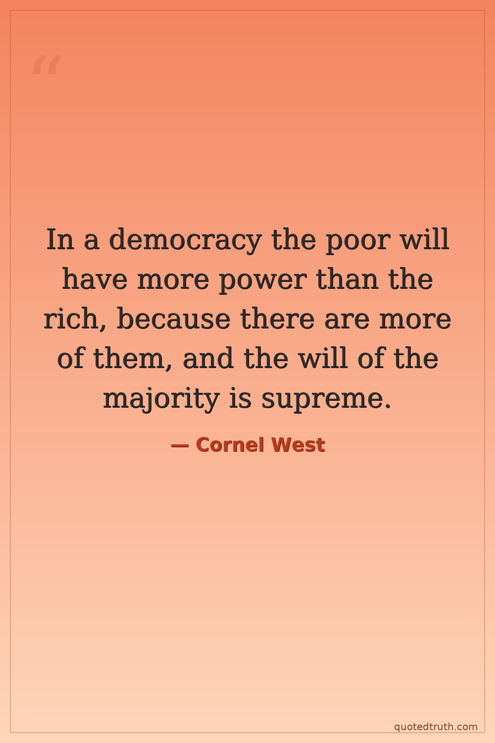 In a democracy the poor will have more power than the rich, because there are more of them, and the will of the majority is supreme.