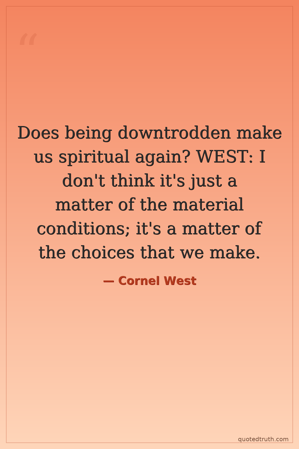Does being downtrodden make us spiritual again? WEST: I don't think it's just a matter of the material conditions; it's a matter of the choices that we make.