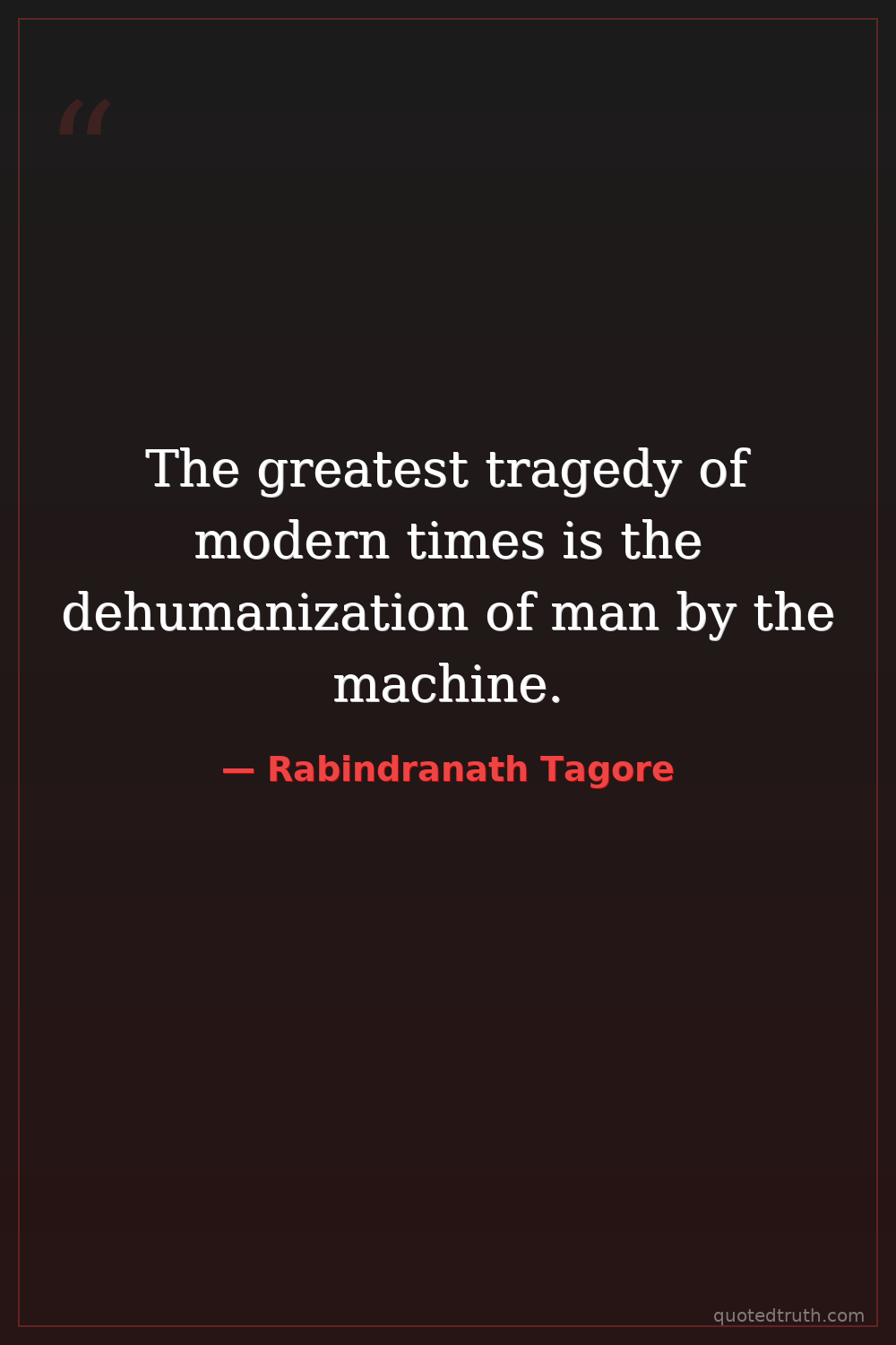 The greatest tragedy of modern times is the dehumanization of man by the machine.