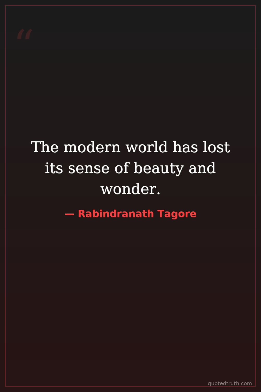 The modern world has lost its sense of beauty and wonder.