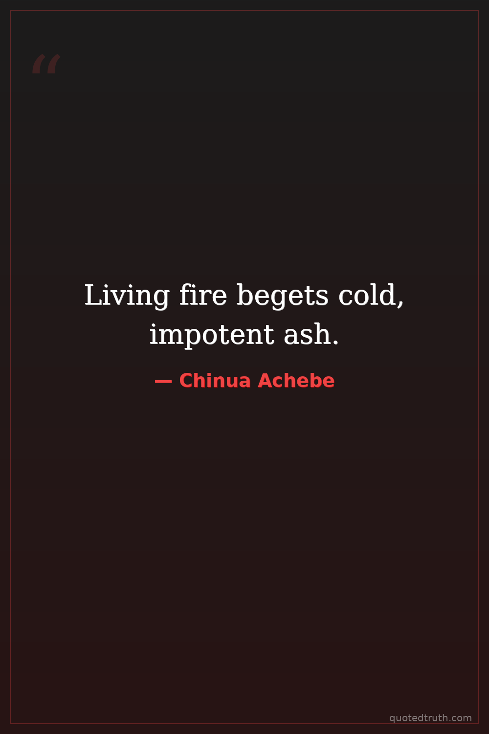 Living fire begets cold, impotent ash.