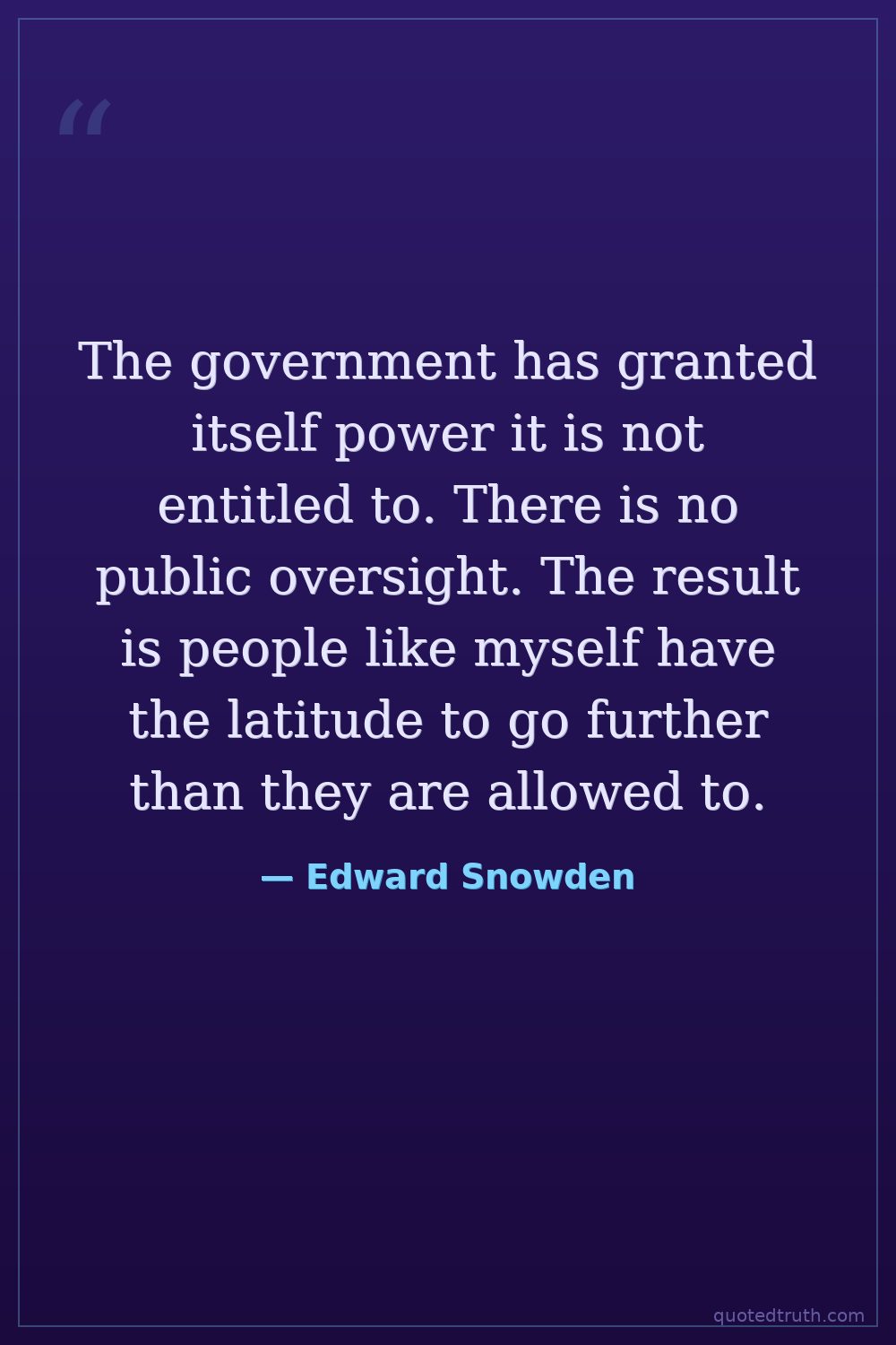 The government has granted itself power it is not entitled to. There is no public oversight. The result is people like myself have the latitude to go further than they are allowed to.