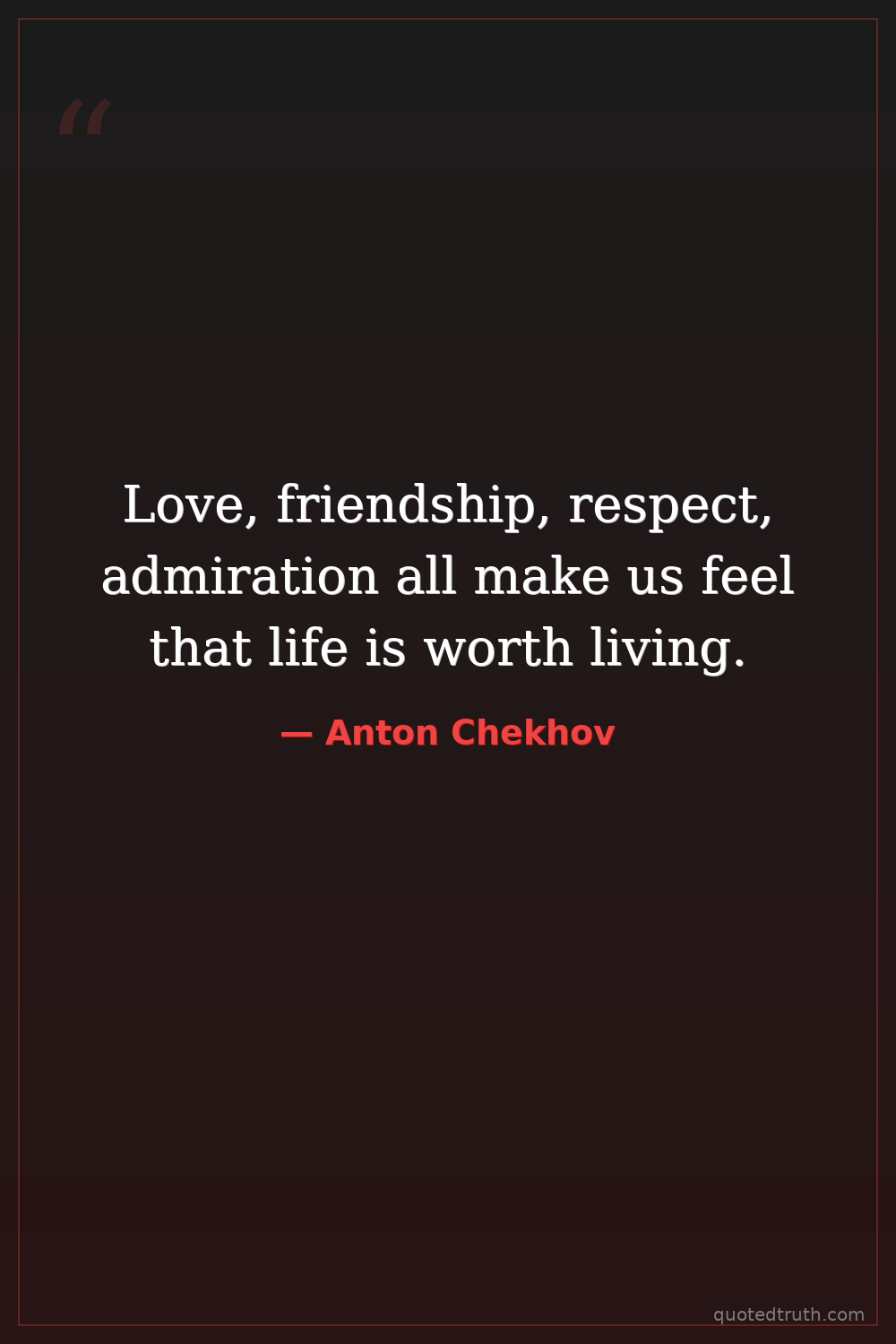 Love, friendship, respect, admiration all make us feel that life is worth living.