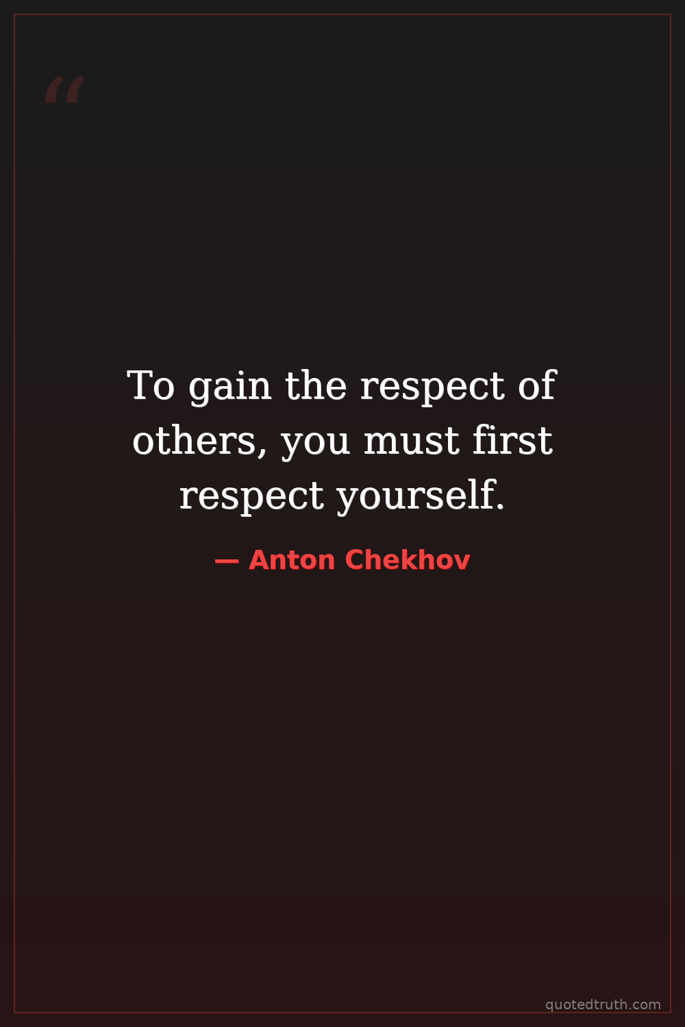 To gain the respect of others, you must first respect yourself.