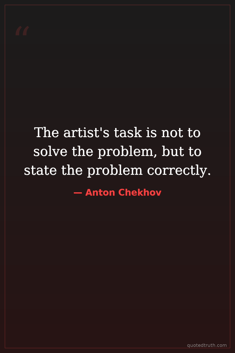 The artist's task is not to solve the problem, but to state the problem correctly.