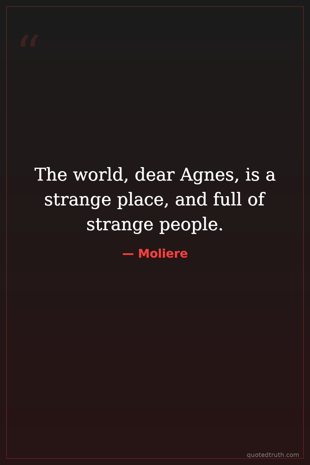 The world, dear Agnes, is a strange place, and full of strange people.