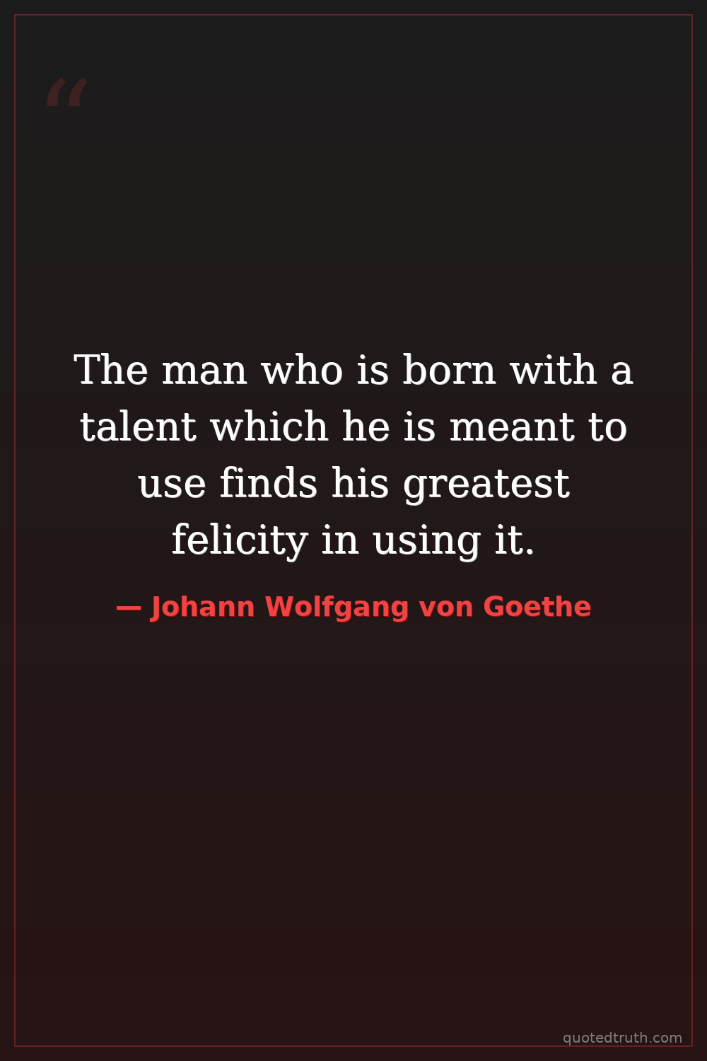 The man who is born with a talent which he is meant to use finds his greatest felicity in using it.