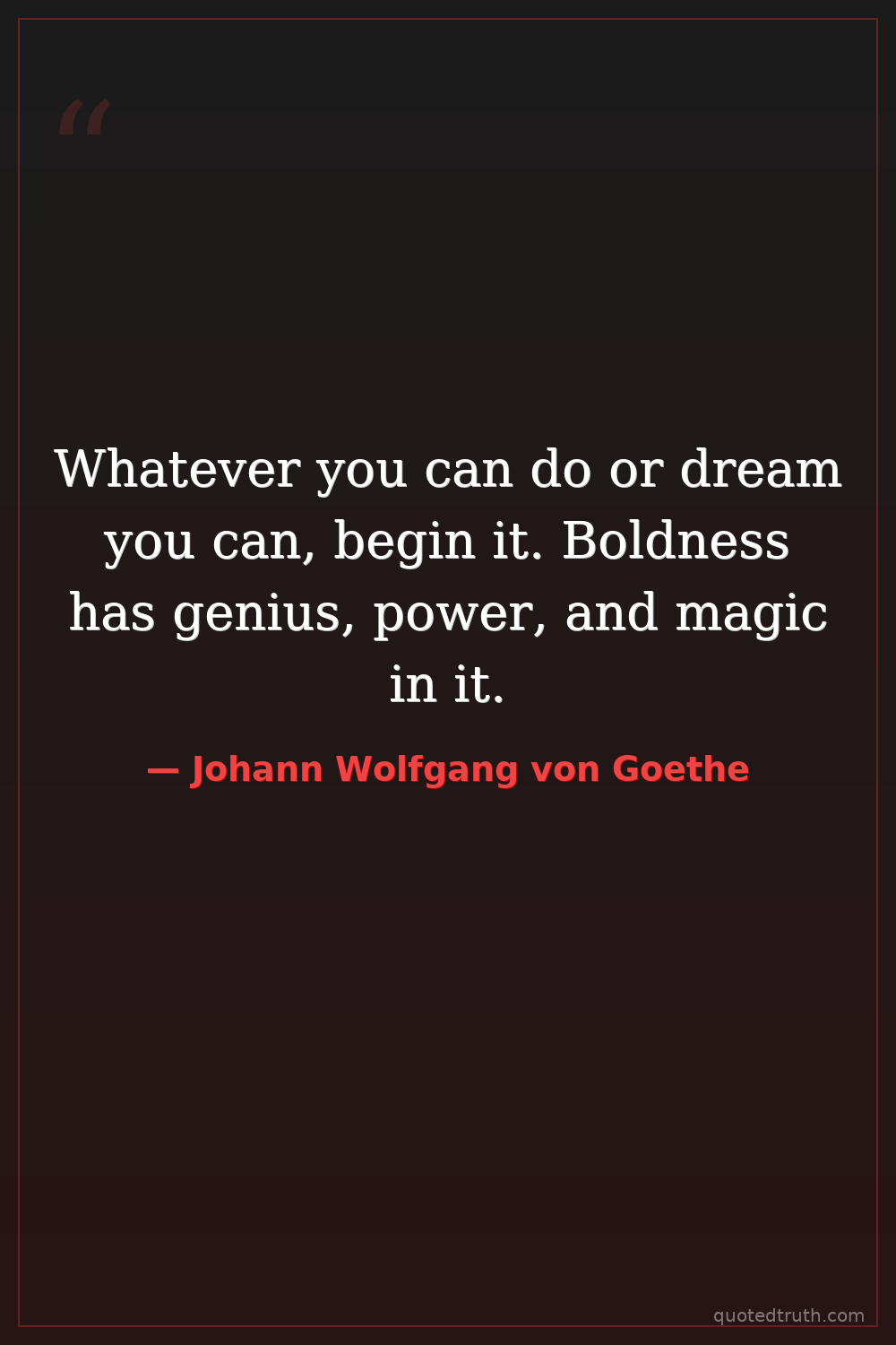 Whatever you can do or dream you can, begin it. Boldness has genius, power, and magic in it.