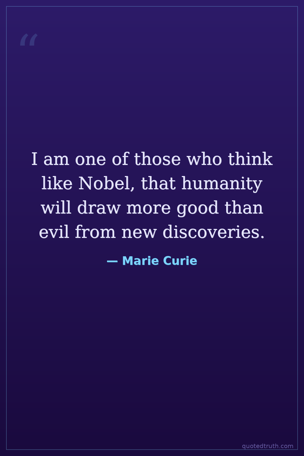 I am one of those who think like Nobel, that humanity will draw more good than evil from new discoveries.