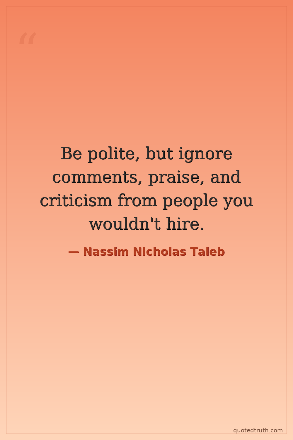 Be polite, but ignore comments, praise, and criticism from people you wouldn't hire.