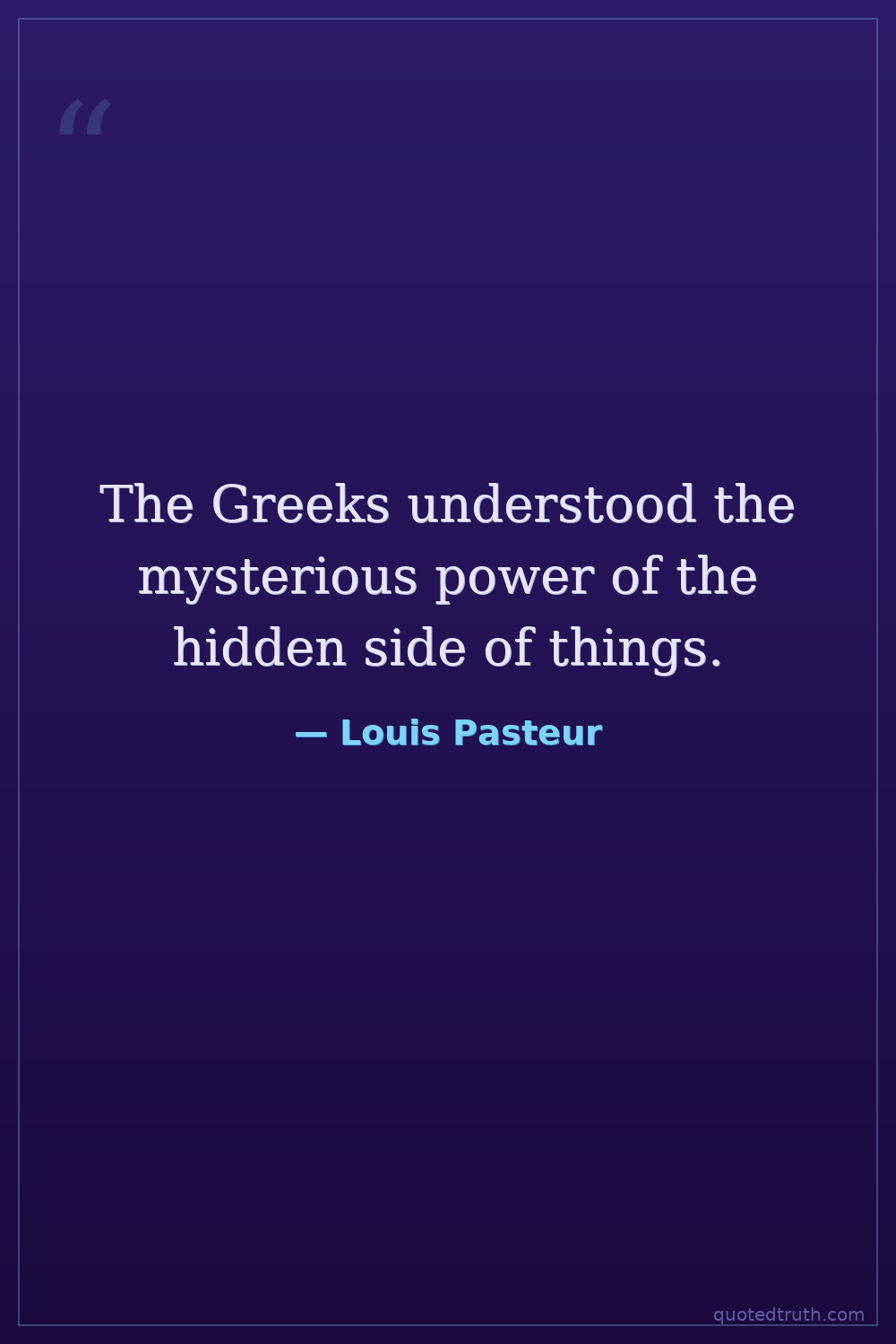 The Greeks understood the mysterious power of the hidden side of things.