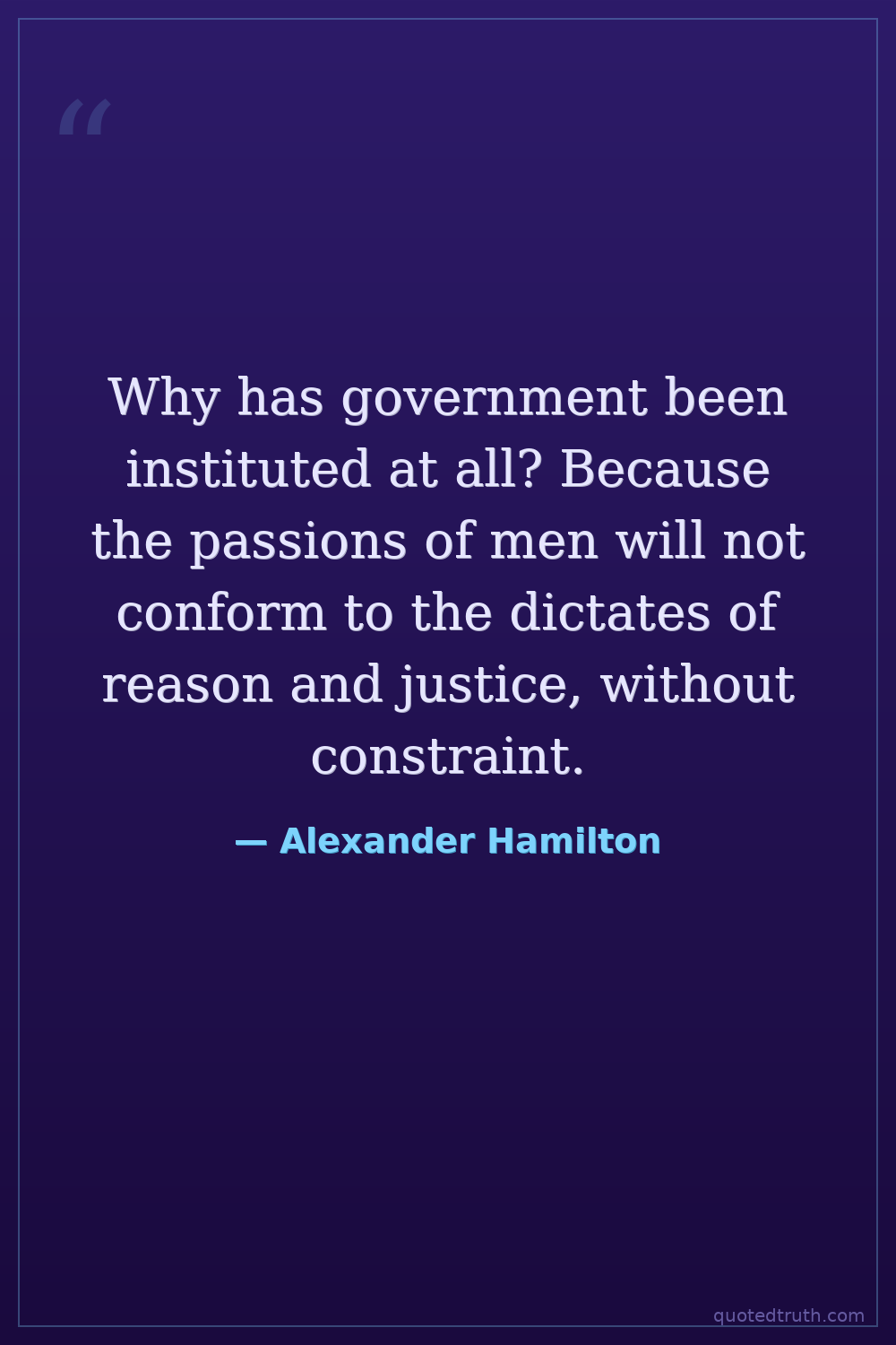 Why has government been instituted at all? Because the passions of men will not conform to the dictates of reason and justice, without constraint.