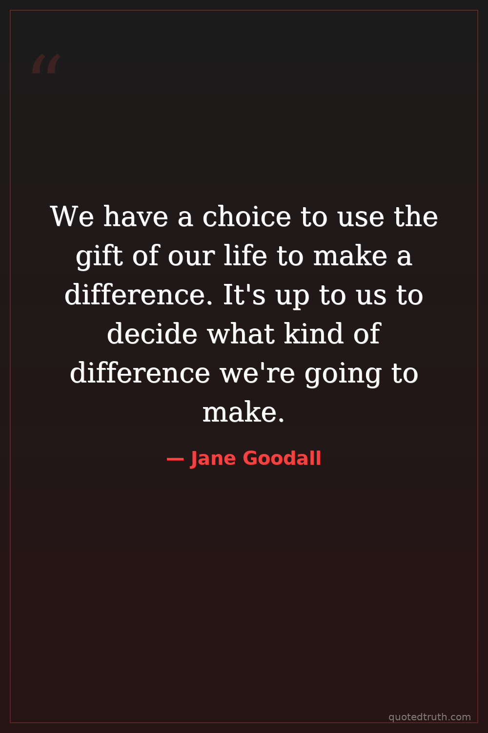 We have a choice to use the gift of our life to make a difference. It's up to us to decide what kind of difference we're going to make.