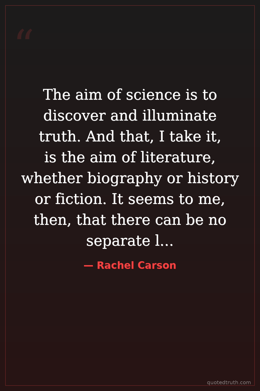 The aim of science is to discover and illuminate truth. And that, I take it, is the aim of literature, whether biography or history or fiction. It seems to me, then, that there can be no separate literature of science.