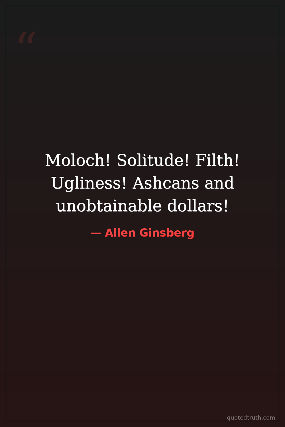 Moloch! Solitude! Filth! Ugliness! Ashcans and unobtainable dollars!
