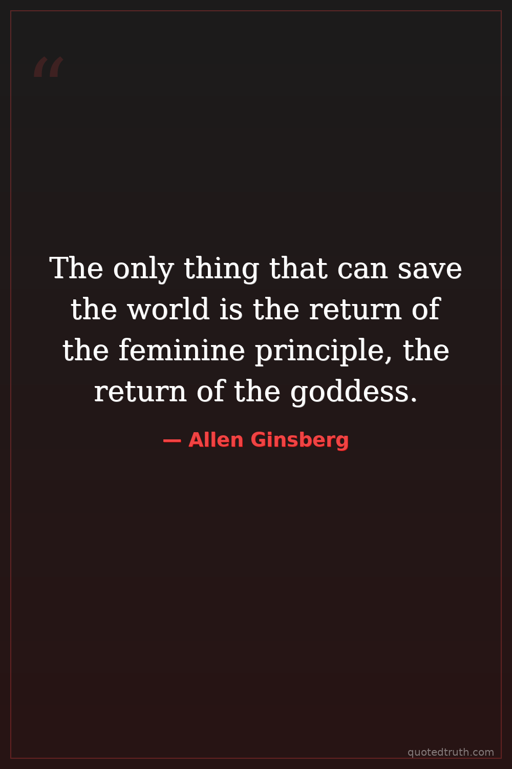 The only thing that can save the world is the return of the feminine principle, the return of the goddess.