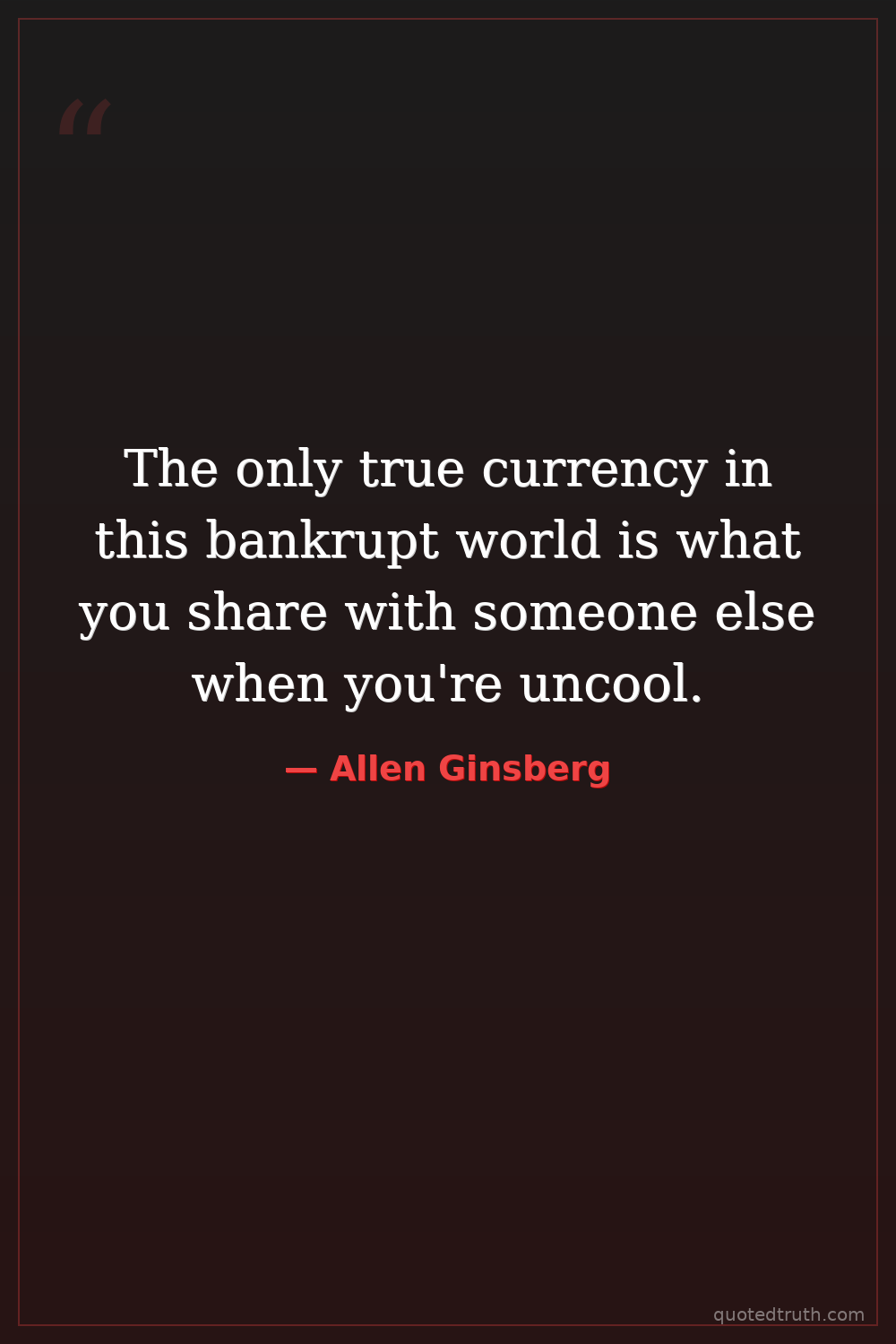 The only true currency in this bankrupt world is what you share with someone else when you're uncool.