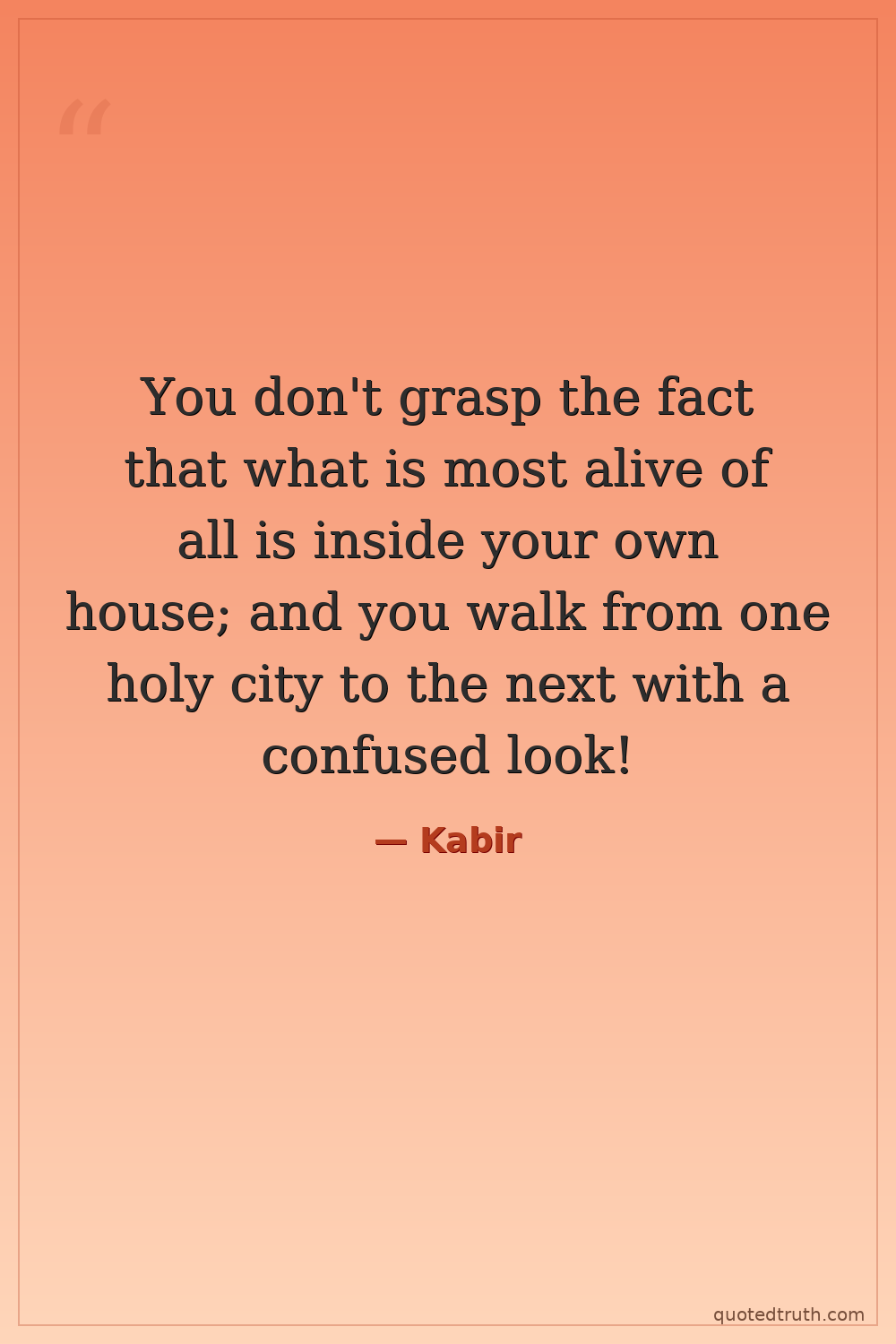 You don't grasp the fact that what is most alive of all is inside your own house; and you walk from one holy city to the next with a confused look!
